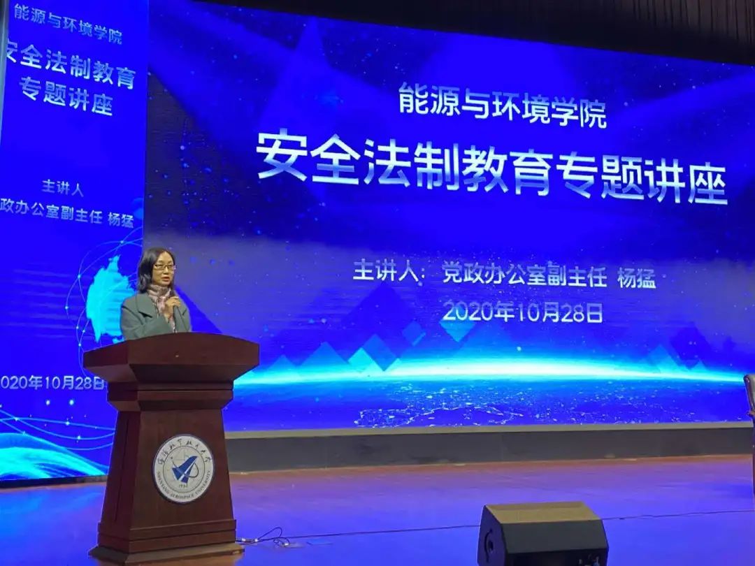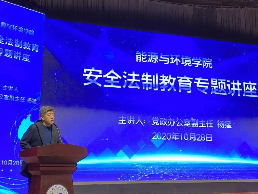大学生法治教育是大学生教育工作的重要组成部分,为培养大学生树立社会主义安全和法律意识、增强法治观念,提升自我保护的能力,2020年10月28日17:00milan米兰官网在蓝天剧场组织召开了大学生安全法制教育专题讲座,特邀党政办公室副主任杨猛担任主讲嘉宾。