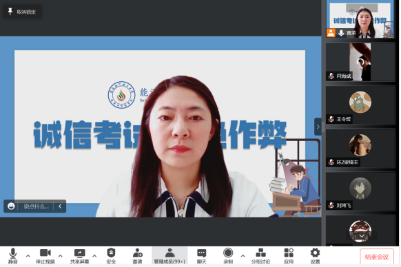 会上,各年级辅导员带领同学们仔细阅读教务处下发的考试相关准则,指出考试违纪、作弊的实际案例,结合真实事例向同学们说明不诚信考试的严重后果,针对学生们对线上考试的一些疑问进行解答,辅导员们还提醒同学们要合理分配时间,注意复习方式方法,事项劳逸结合、科学复习。同学们纷纷表示:将诚信考试,以自己的真才实学通过考试,维护学院优良的考风考纪。