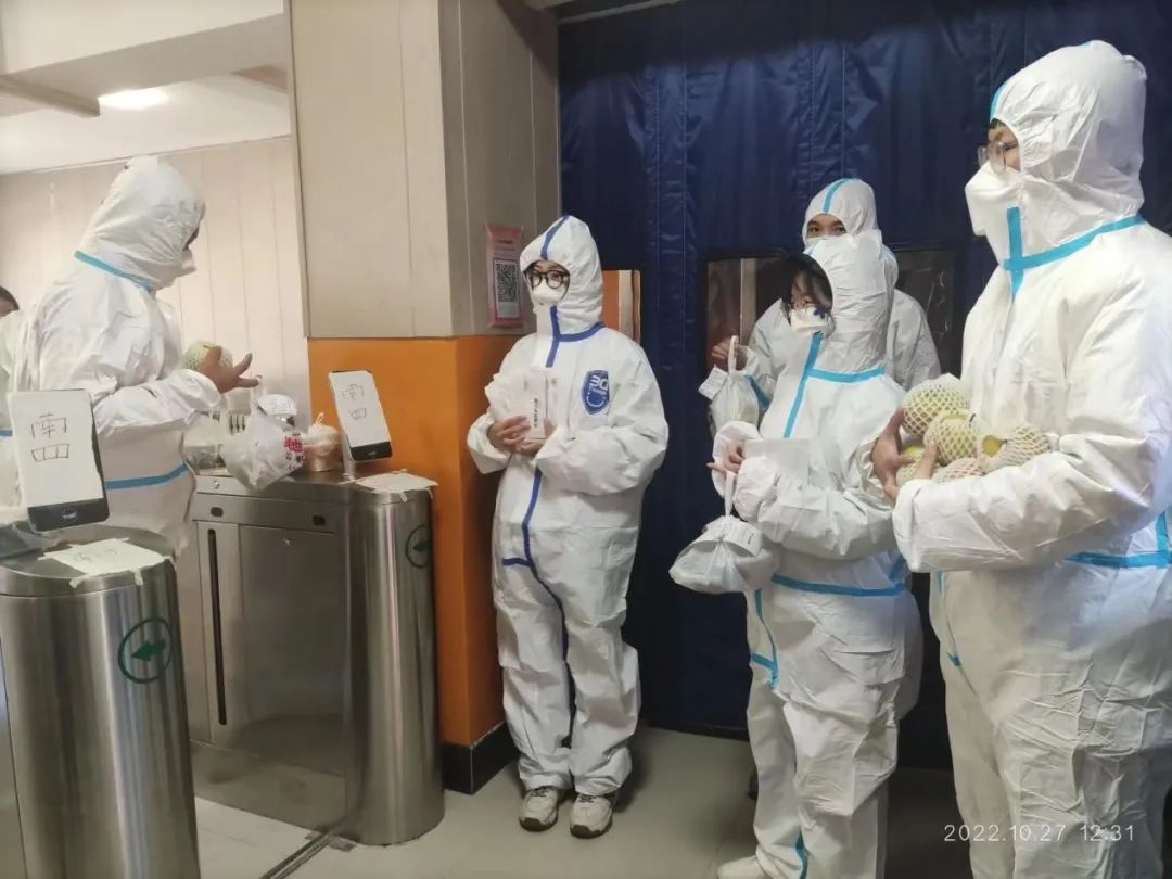 10月27日上午,milan米兰官网学生党支部党员、部分发展对象以及爱心联合会共同开展志愿服务活动,为隔离的同学送上物资。