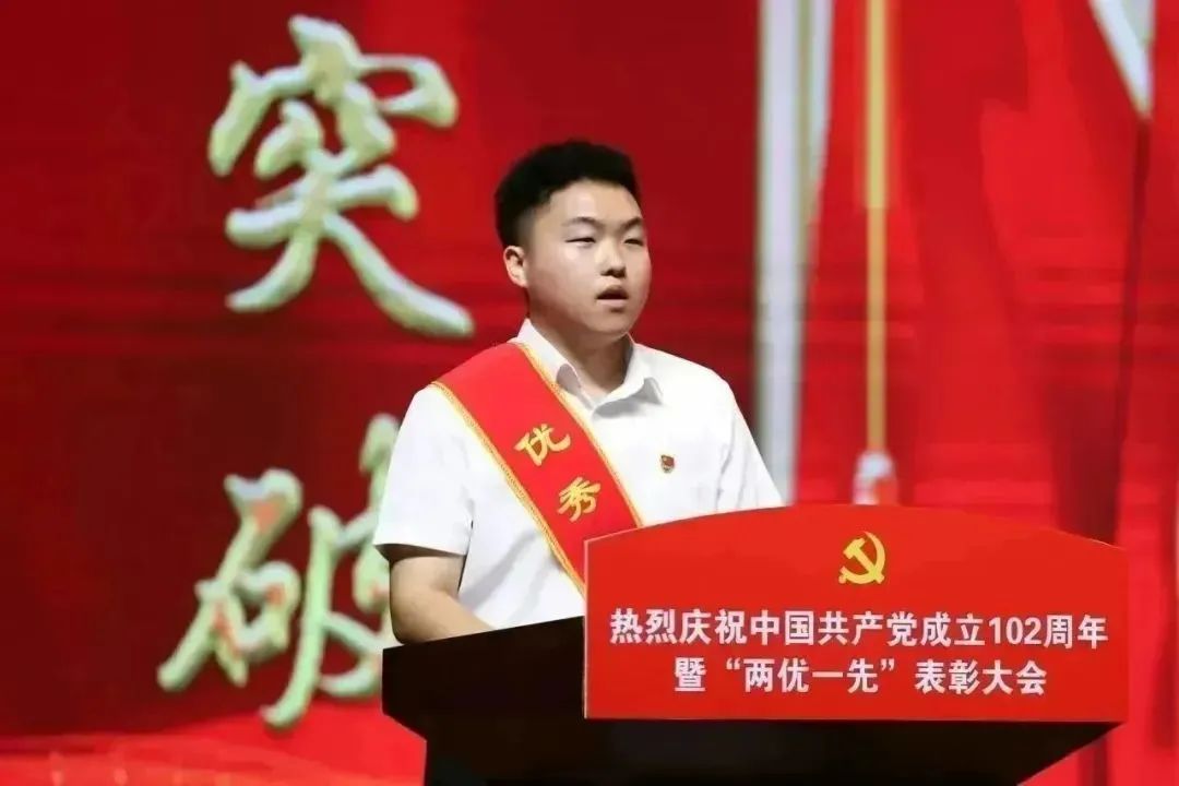 会上,milan米兰官网学生党支部副书记沈家阔作为获奖代表发言。