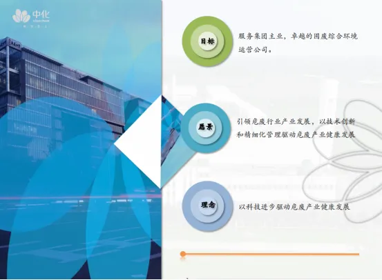 中国中化控股有限责任公司是由中国中化集团有限公司与中国化工集团有限公司重组而成,为国务院国资委监管的国有重要骨干企业。业务涵盖生命科学、材料科学、基础化工、环境科学、橡胶轮胎、机械装备、城市运营、产业金融八大领域。沈阳中化化成环保科技有限公司为中化环境的控股子公司,是中化环境控股有限公司在东北区域发展固(危)废环境治理领域的综合型平台公司及现代化综合环保服务提供商,致力于成为各级政府及各类工业园区开展环境保护工作的重要抓手,提供环境整体解决方案。