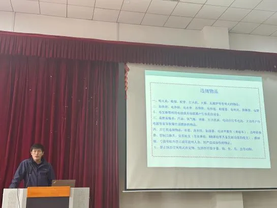 王晓旭老师对寝室、实验室、研究生工作室用电安全进行强调,要求确保人走电断,对有安全隐患的违规物品进行重申,同时结合案例对反诈防骗进行再教育。提醒同学们必须时刻将安全放在首位,做自己生命安全的第一负责人。