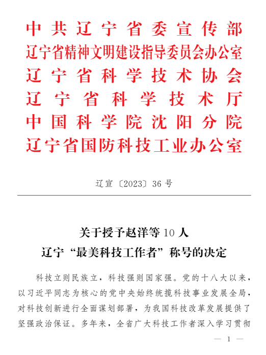 近日,2023年辽宁“最美科技工作者”评选结果正式公布。经组织推荐、调研访谈、专家评审、人选公示等环节,最终评选出10名辽宁“最美科技工作者”,milan米兰官网杨天华教授成功入选。
