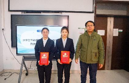 颁奖仪式上由周全老师和王志美老师颁发证书。周全老师对训练营成员的成果给予了充分的肯定,同时他也鼓励学生多参与优质的学科竞赛,不断提升自身双创能力。
