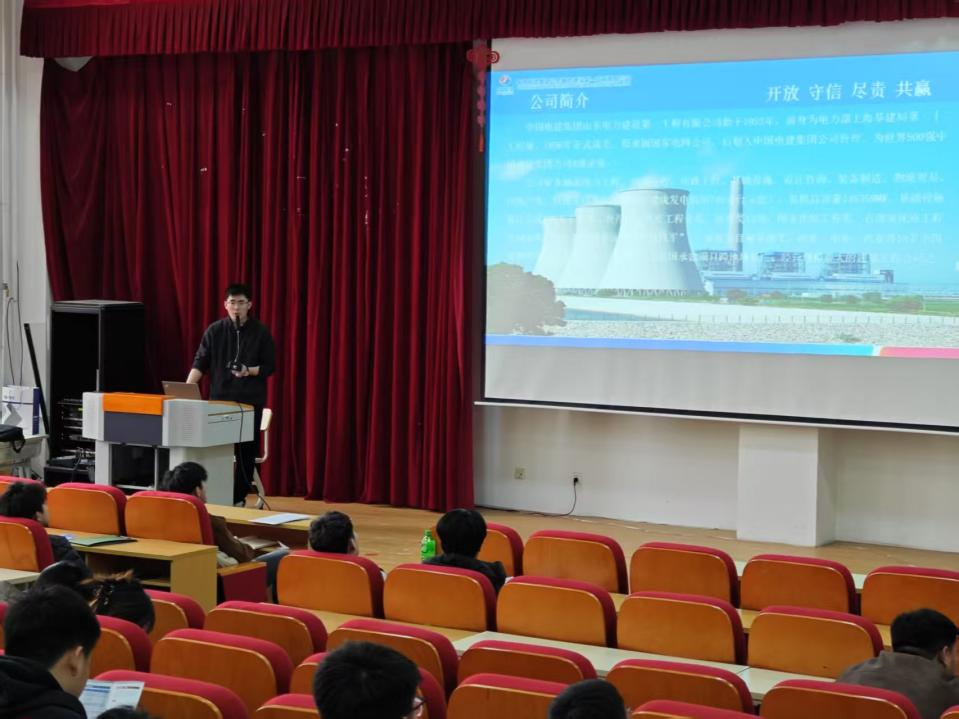 313日下午,中国电建集团山东电力建设第一工程有限公司在能环楼二楼报告厅成功举办了企业招聘宣讲会。企业代表全面且深入地阐释了自公司的整体概况、核心价值理念以及企业精神,并且对招聘流程、实习规划、工作内容详情、职业发展路径规划以及考核标准细则等方面展开了精细入微的讲解。此外,企业代表依托自身深厚的行业经验储备,分享了对行业未来发展趋势极具深度的见解,为学生们提供了富有前瞻性与指导性的职业规划建议。